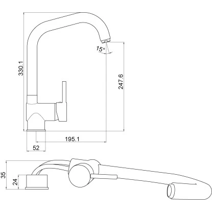 – Mit umklappbarem Auslauf (Höhe der umgeklappten Armatur: 3,5 cm)