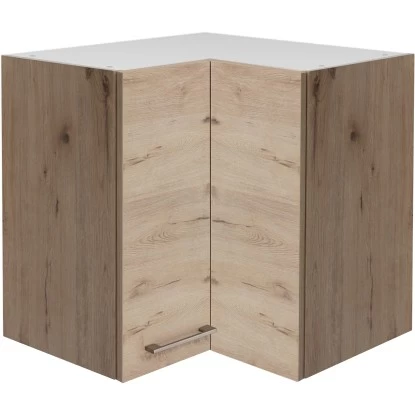 Top-Qualität „Made in Germany“ zum kleinen Preis. Der Eck-Oberschrank überzeugt durch eine geradlinige Formgebung und zeichnet sich durch ein modernes Ambiente aus. Dabei bietet Ihnen der hochwertige Oberschrank ein reizvolles Dekor in der Farbe San Remo Eiche und eignet sich optimal als passende Ergänzung zur Küchenserie Arizona.