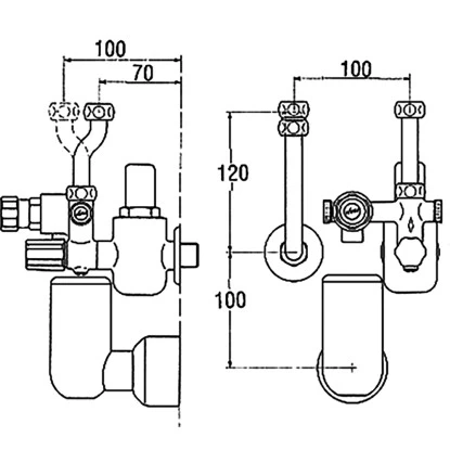 für 100 mm Wandabstand der Anschlussstutzen des Druckspeichers
