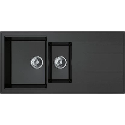 Mit ihrem eleganten Design sorgt die Einbauspüle Luxuria von Miló für eine moderne Küchengestaltung. Sie zeichnet sich durch eine hochwertige Verarbeitung und pflegeleichte Granitoberflächen aus, die eine ideale Unterstützung bei der täglichen Küchenarbeit ist. Ihre rechteckige Form mit den Maßen 100 cm x 50 cm x 21,5 cm (H x B x T) lässt sich problemlos in alle Arbeitsflächen integrieren. Dabei erweist sich das praktische Doppelbecken als vielseitig für große Küchen, in denen häufig von Hand gespült oder Gemüse gewaschen wird. Es steht immer ein zweites Becken zur Verfügung, wenn das andere gerade in Verwendung ist.