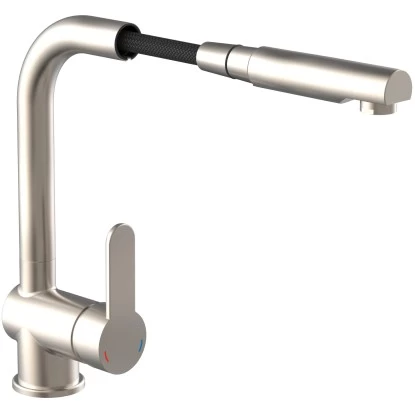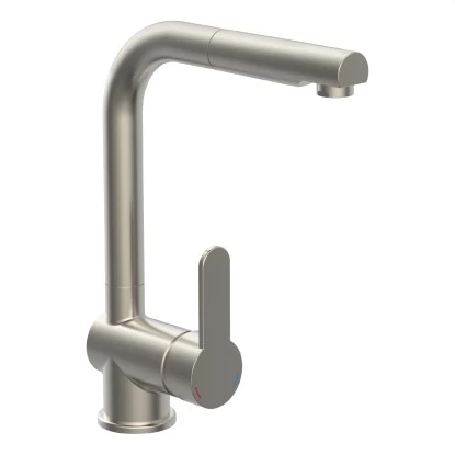 London Spültischarmatur mit Herausziehbarem Auslauf Edelstahloptik. Ressourcenschonend handeln auch im Kleinen. Dann ist diese Einhebel-Mischbatterie mit Cold-Start Technik genau richtig, denn sie gewährt bei senkrechter Position des Bedienhebels nur den Zufluss von Kaltwasser. Bei vielen Waschgängen völlig ausreichend.