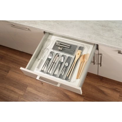 Mit dem Wenko Besteckkasten bringen Sie Ordnung in Ihre Schublade. Gefertigt aus hochwertigem grau-transparentem Kunststoff passt der Kasten zur jeder Küche. So ist Ihr Besteck stets vorsortiert und griffbereit