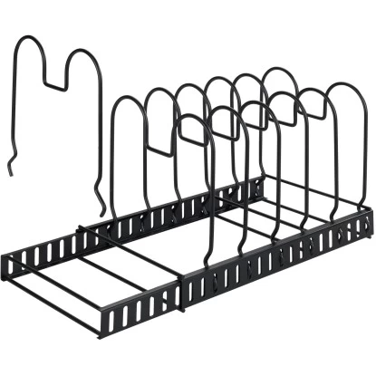 Ordnung macht Laune! Der moderne Geschirrständer ermöglicht eine platzsparende und übersichtliche Aufbewahrung von Pfannen, Deckeln, Backformen, Geschirr, Auflaufformen, Schneidebrettern, etc. in unterschiedlichen Größen.