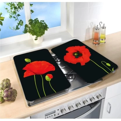 Die Wenko Herdabdeckplatten Universal Mohn im 2er Set mit dekorativem Fotomotiv geben dem Herd zusätzliche Funktionalität.