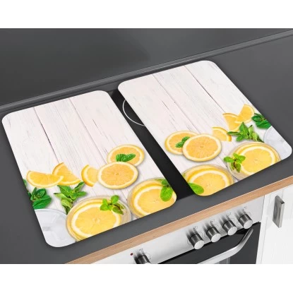 Die Wenko Herdabdeckplatten Universal Zitronen im 2er Set mit dekorativem Fotomotiv geben dem Herd zusätzliche Funktionalität. Die großen Glasbretter sorgen für zusätzlichen Platz und machen den Herd zur Arbeitsplatte.